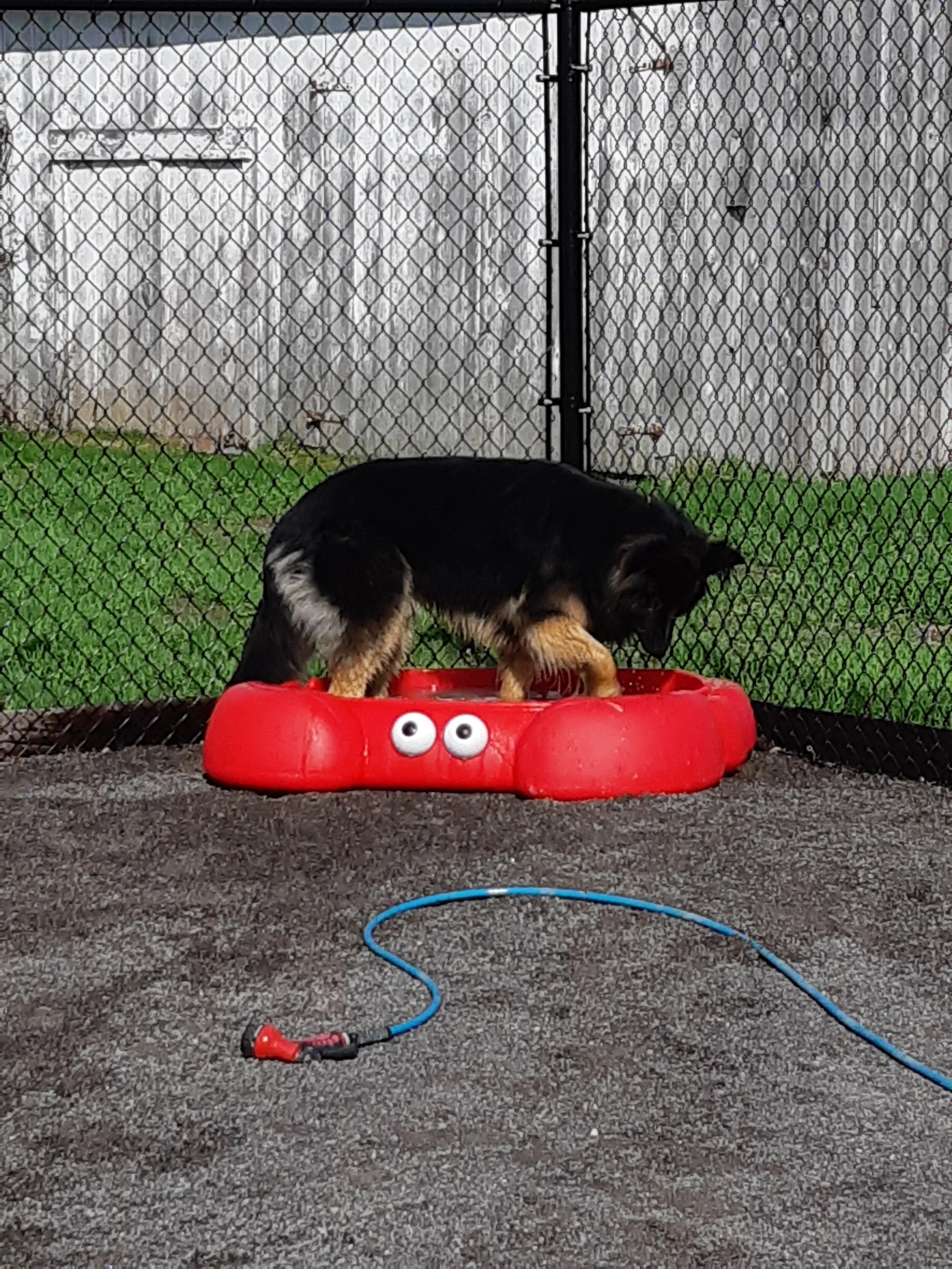 Notre grande cour extérieure de 36 pieds par 32 pieds (d’une hauteur sécuritaire de 6 pieds) offre un espace de jeu répondant aux besoins de nos plus grands visiteurs.